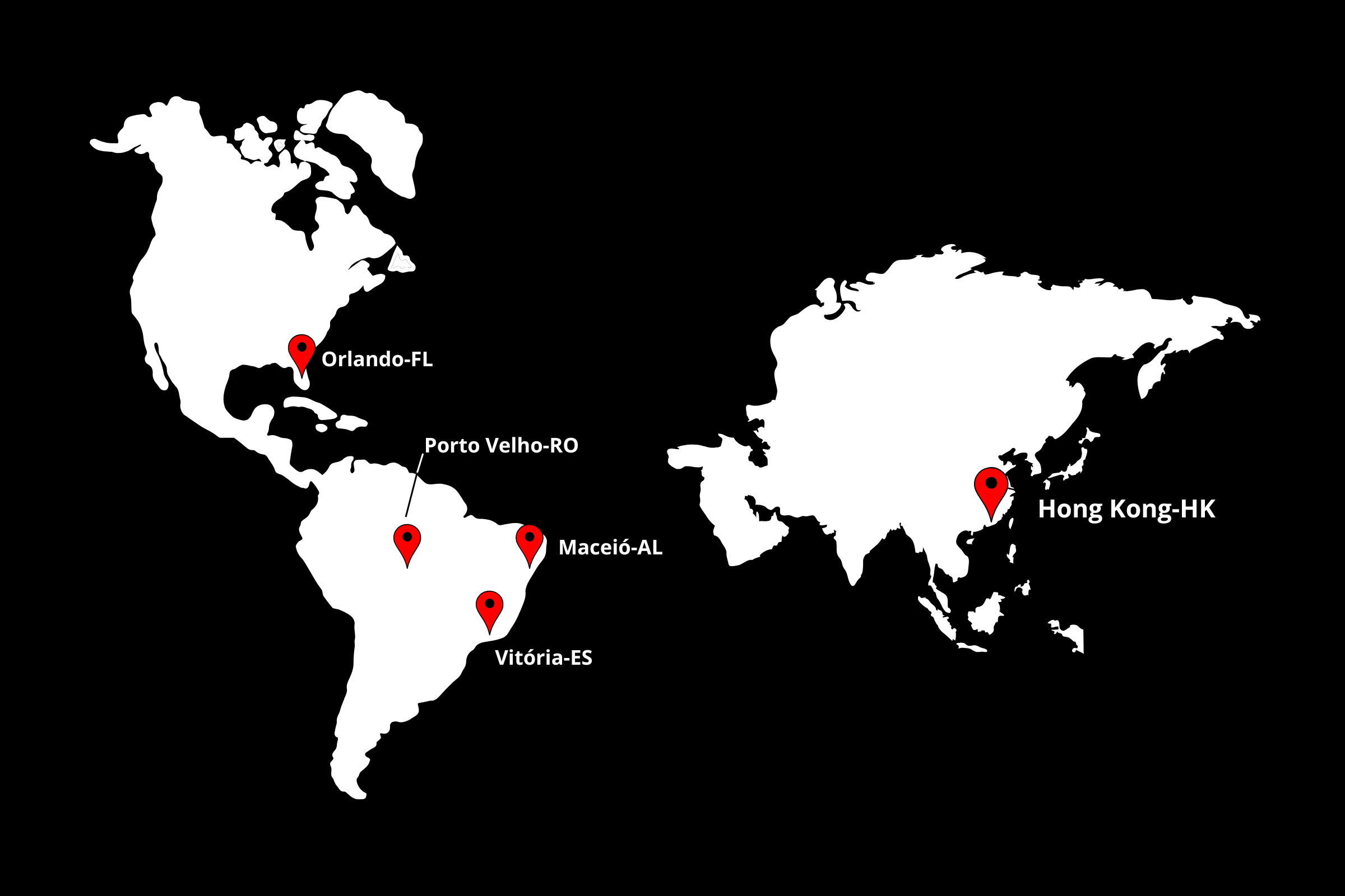 A matriz está localizada em Vitória, Espírito Santo, com filiais em Maceió (AL), Porto Velho (RO) e Orlando, Flórida (EUA) e Hong Kong (HK). Oferecemos serviços como importação e exportação, frete marítimo, logística internacional e consultoria empresarial.